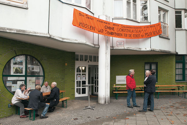 Der Liegenschaftsfonds hatte das Gebäude 2007 zusammen mit zwei anderen Seniorenhäusern in Tiergarten lukrativ verkauft – ohne den Käufern Auflagen abzuverlangen. Im Frühjahr 2014 hatte der Käufer, der Investor Akelius, Baumaßnahmen angekündigt: Neben dem Neubau eines sechsstöckigen Hauses im Garten soll das bestehende Gebäude gedämmt und um eine Etage aufgestockt werden. Dies sollte zu Mietsteigerungen von bis zu 60 Prozent führen. Danach hätte eine Einzimmerwohnung im Haus mit 42 Quadratmetern bis zu 800 Euro gekostet. Knapp zwei Jahre waren für die Arbeiten veranschlagt.