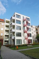 Dass der baurechtliche Bestandsschutz entfällt, hat einige aufwendige Folgen: Beim Umbau müssen nämlich nun alle Anforderungen der Bauordnung eingehalten werden, die für einen Neubau gelten: von der Wärmedämmung über den Schall- und Brandschutz bis hin zur Barrierefreiheit. Für einen zeitgemäßen Trittschallschutz musste die Gesobau deshalb in den Altbauten die Holzbalkendecken durch Ziegeldecken ersetzen. Außerdem wurden an den Hoffassaden Wärmedämmplatten montiert und neue Fenster eingesetzt. An der Straßenfront wurden die Kastendoppelfenster aufgearbeitet. Die meisten Wohnungen erhielten einen Balkon. Und natürlich mussten Bäder und Küchen neu eingebaut werden. Die geforderten barrierefreien Wohnungen brachte die Gesobau in dem neueren Gebäude in der Streustraße 117 unter, das bereits einen Fahrstuhl hatte. So konnte man sich bei den Altbauten den Anbau von Aufzügen sparen.