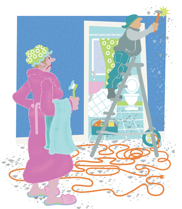 Hier kann der Mieter einen Anspruch auf eine adäquate Ersatzunterkunft haben. Nach Ansicht des Amtsgerichts Schöneberg ist es unzumutbar, bei vierwöchigen Arbeiten an der Holzbalkendecke in einer leeren, aber kleineren Nachbarwohnung zu schlafen und sich zum Kochen und Duschen in die von den Bauarbeiten nicht betroffenen entsprechenden Räume der eigenen Wohnung zu begeben (Amtsgericht Schöneberg vom 21. August 2015 – 19 C 458/14).
