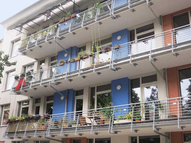 Inzwischen umfasst das Netzwerk Effizienzhaus Plus bundesweit 36 Modellvorhaben vom Ein- bis zum Mehrfamilienhaus im Neu- und Altbau. In der Sophienstraße 35 in Lichtenberg hat die Bauherrengemeinschaft LaVidaVerde ein viergeschossiges Gebäude mit 18 Ein- bis Vierzimmerwohnungen im Effizienzhaus-Plus-Standard errichtet. Der Stromüberschuss beträgt 4390 Kilowattstunden im Jahr, die Kaltmiete 8,80 Euro pro Quadratmeter.