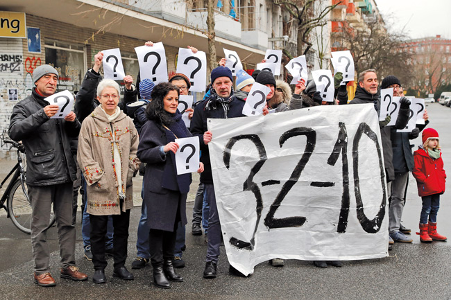 Das Haus mit 38 Wohnungen und sieben Gewerbeeinheiten wurde im Dezember versteigert. Ein anonymer Bieter erhielt den Zuschlag für 7,16 Millionen Euro (das MieterMagazin berichtete in der Ausgabe 1+2/2018, Seite 21: „3-2-10 – Wir halten zusammen“). Wer einen so hohen Kaufpreis refinanzieren will, muss die Mieten kräftig anheben. Die Mieter schlossen sich deshalb zusammen und forderten den Käufer mit öffentlichkeitswirksamen Aktionen auf, aus der Anonymität herauszutreten.