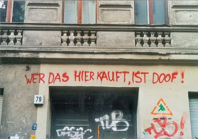 Gesina von Schroeder hat den Wandel ihres Kiezes hautnah miterlebt und dokumentiert, in einem Band mit Interviews und in zahlreichen Fotos. Einen Teil dieser Fotos zeigt die Apotheke am Helmholtzplatz zurzeit unter dem Motto „Ansichtssachen“. Damals gab es noch Aufschriften wie „Ich habe keine Angst mehr“ und „Wer das hier kauft, ist doof!“ an den Häusern. Abblätternde Farben, fehlender Putz, gesperrte Balkone – der morbide Charme der unsanierten Häuser ist heute nur noch zu erahnen. Nach dem Besuch der Ausstellung sollte man einen Rundgang um den Platz machen. Die Zeiten haben sich geändert, die Bewohner haben sich geändert. Auch die Fotografin lebt nicht mehr im Kiez. Aber ihre Fotos dokumentieren ein Stück Kiezgeschichte.