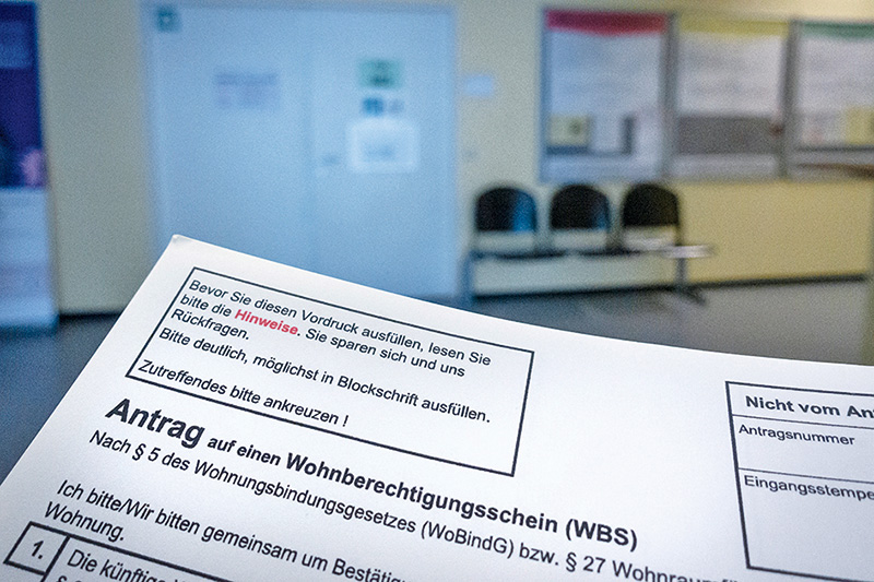 Nur wer unterhalb eines bestimmten Haushaltseinkommens liegt, darf in eine Sozialwohnung einziehen. Dieses weist man mit einem Wohnberechtigungsschein (WBS) nach. Die Einkommensgrenzen wurden 2001 bundeseinheitlich im Wohnraumförderungsgesetz festgelegt. Ein Single-Haushalt darf bis zu 1000 Euro im Monat verdienen, um noch einen WBS zu bekommen, bei einem Paar mit drei Kindern kann das Haushaltseinkommen bis zu 2650 Euro betragen. Die einmal festgelegten Grenzen halten mit der Preisentwicklung nicht mit. Berlin hat sie vor langer Zeit um 40 Prozent erhöht. Für diesen WBS 140 – so genannt, weil die Einkommensgrenze bei 140 Prozent des Bundeswertes liegt – kann ein Einpersonenhaushalt bis zu 1400 Euro verdienen, die fünfköpfige Familie bis zu 3710 Euro. Um neu gebaute Sozialwohnungen auch für größere Kreise zugänglich zu machen, hat der Senat in den letzten Jahren Fördermodelle entwickelt, die einen Einzug mit einem WBS 160 oder WBS 180 ermöglichen. Das neueste Fördersegment ist sogar für Inhaber eines WBS 220 offen. Das bedeutet, dass Alleinstehende 2200 Euro, Familien mit drei Kindern sogar 5830 Euro Monatseinkommen haben dürfen, um noch eine Sozialwohnung beziehen zu können.