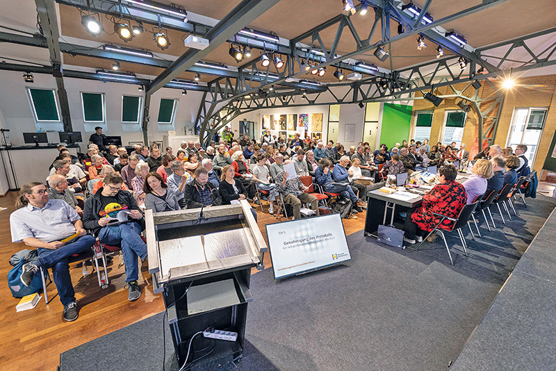 Doch bis dahin sollten es noch gut viereinhalb Stunden sein, zu deren Beginn von Geschäftsführung und Vorstand berichtet wurde, wie das Jahr 2023 aus Sicht des Mietervereins politisch und finanziell ausgesehen hat. Es wurde diskutiert und gerungen, auch bei den späteren 15 Anträgen von Mitgliedern und beim Leitantrag.