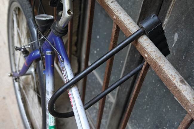Stehen Fahrräder im Hausflur, auf dem Grundstück oder in einem allgemein zugänglichen Fahrradkeller, sollten sie unbedingt angeschlossen werden. Einige Versicherungen verlangen, dass sie sogar im eigenen Keller angeschlossen werden müssen. Nach Erfahrungen der Polizei nehmen sich Fahrraddiebe höchstens drei Minuten Zeit, um ein Fahrradschloss zu knacken. Hält ein Schloss diesem ersten „Angriff“ stand, lässt der Dieb meist von Schloss und Fahrrad ab. An guten Bügel-, Falt- und Kettenschlössern beißen sich selbst Profis mit Bolzenschneidern die Zähne aus. Bei Versuchen der Stiftung Warentest erzielte allerdings nur jedes vierte Schloss ein gutes Ergebnis. Einige Versicherer akzeptieren deshalb nur Schlösser bestimmter Hersteller. Die Stiftung Warentest untersucht in regelmäßigen Abständen die rund 300 auf dem Markt befindlichen Bügel-, Falt-, Ketten- und Panzerkabelschlösser. Ernüchternd: „Kein Fahrradschloss bietet absolute Sicherheit.“