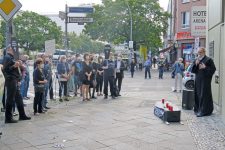 Vor dem Kurt-Schumacher-Haus, der Geschäftsstelle der Berliner SPD, haben am 11. August 2021 der Berliner Mieterverein und eine Reihe von Initiativen, Mieterräten und Mieterbeiräten das Wohnraumversorgungsgesetz symbolisch zu Grabe getragen.