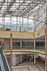 Wohnen im Einkaufszentrum – das hört sich ungewöhnlich an. Und natürlich stellen die Wohnungsmieter:innen des Treptower Park-Zentrums ihre Möbel nicht zwischen Schuhgeschäften, Modeläden oder Discountern auf. Doch zu den 24000 Quadratmetern Gewerbemietfläche des Centers kommen 2200 Quadratmeter Wohnfläche hinzu. Die befinden sich in den angrenzenden Häusern in der Beermannstraße 2 und 5. Wohnen in einkaufsgünstiger Lage, könnte man sagen. Allerdings gibt es beispielsweise Lebensmittel schon lange nicht mehr, seitdem der Real-Supermarkt im Center 2022 dichtgemacht hat.