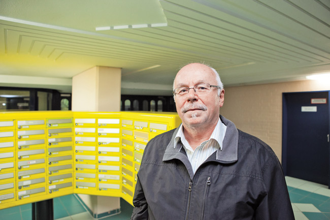 Das Ehepaar Schnock hätte am liebsten auf dem Absatz kehrt gemacht, als es sich 1990 hier eine Wohnung anschaute. Heruntergekommen und verdreckt war alles, so erzählen sie. Es waren die „wilden 1990er“, als sich im Gebäude die sozialen Probleme ballten. Damals standen so viele Wohnungen leer, dass Franz-Josef Schnock vom Hausmeister einen ganzen Schlüsselbund in die Hand gedrückt bekam. Es war vor allem die Terrasse, die beide dann doch noch überzeugte. Sechs Jahre lang wohnten sie in einer fast 90 Quadratmeter großen Wohnung, bevor sie in eine kleinere Wohnung im Erdgeschoss umgezogen sind. Diese ist so geschnitten, dass man einmal rundum gehen kann. „Unser Bad hat zwei Türen, das ist schon ziemlich ungewöhnlich“, sagt Franz-Josef Schnock. Der Rentner führt trotz seiner Gehbehinderung gern durchs Haus. Den verblüfften Besuchern erklärt er als erstes, warum der Fahrstuhl im zweiten und dritten Stock nicht hält: „Hier befindet sich die Autobahn.“ Er zeigt die beeindruckende Haustechnik, die Tiefgarage („Niemand ist so schnell auf der Autobahn wie ich“) und seinen Hobbyraum, den sich der gelernte Krankengymnast zu einem Massage-Zimmer hergerichtet hat. Das Ehepaar Schnock, beide um die 80, ist rundum zufrieden. Supermarkt, Apotheke, Friseur, Zeitungsladen – es ist alles da, was man braucht. Auch die Nachbarschaft sei sehr gut. Franz-Josef Schnock hat vor über 16 Jahren in der Siedlung einen Internettreff initiiert, wo vor allem Senioren den Umgang mit dem Computer lernen. Außerdem engagiert er sich in einer Gesangsgruppe. „Es ist ein sehr ruhiges, angenehmes Wohnen“, betont seine Frau.