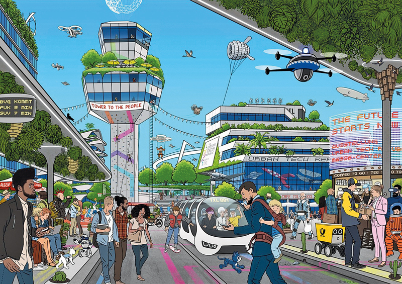 Auf dem Gelände des ehemaligen Flughafens Tegel soll eines der größten Smart-City-Projekte Europas entstehen. Die „Urban Tech Republic“ als Unternehmens- und Hochschulstandort soll Technologien für die Stadt der Zukunft entwickeln: „Effizienter Einsatz von Energie, nachhaltiges Bauen, umweltschonende Mobilität, Recycling, die vernetzte Steuerung von Systemen, sauberes Wasser und der Einsatz neuer Materialien.“ Beabsichtigt ist, dass diese im daneben geplanten „smarten“ Wohnviertel – dem Schumacher-Quartier mit über 5000 Wohnungen – zum Einsatz kommen. Errichtet wird es von landeseigenen Wohnungsbaugesellschaften, Genossenschaften und privaten Baugruppen – mit einem Anteil geförderter Wohnungen von 35 bis 40 Prozent. Die Baumaßnahmen sollten 2022 beginnen, im März wurde jedoch zunächst ein Ankunftszentrum für Geflüchtete aus der Ukraine im ehemaligen Flughafen eingerichtet.