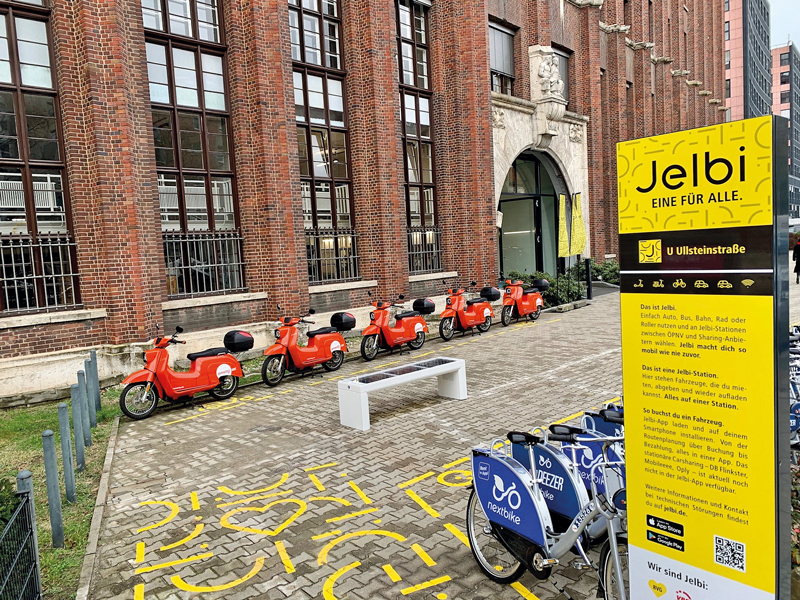 In der benachbarten „Jelbi-Station“ der BVG an der Daum-, Ecke Rhenaniastraße können Fahrzeuge jeder Art gemietet, abgegeben und Elektrofahrzeuge aufgeladen werden. Die Angebote der überwiegend privaten Mobilitätspartner der BVG können im sogenannten Jelbi-Waterkant-Netz mit einer entsprechenden App gebucht werden.
