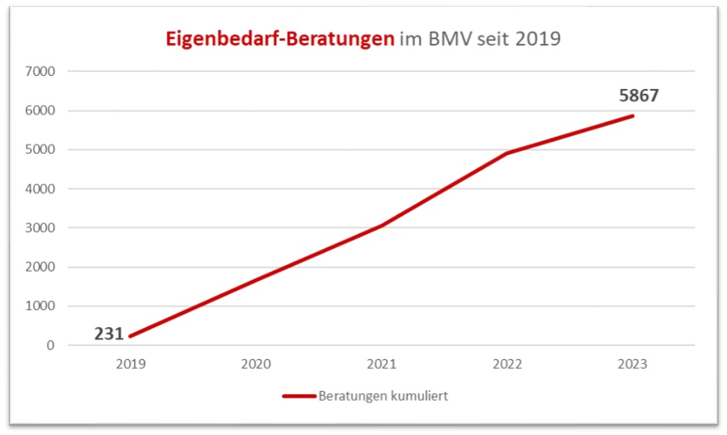Wenn wir uns den Anstieg der Umwandlungen von Miet- in Eigentumswohnungen seit 2009 anschauen, können die Prognosen für die kommenden Jahre nur besorgniserregend sein. Die exakte Anzahl der Eigenbedarfskündigungen pro Jahr ist zwar nicht erfasst; die Prozess-Statistiken der Rechtsschutzversicherung im Deutschen Mieterbund (DMB) zeigen aber einen steigenden Trend. Für das Jahr 2022 liegt die Eigenbedarfskündigung mit rund acht Prozent aller Fälle auf Platz fünf der häufigsten bundesweiten Mietrechtsprozesse. Der BMV hat seit 2019 insgesamt 5.867 Mitglieder wegen einer Eigenbedarfskündigung beraten.