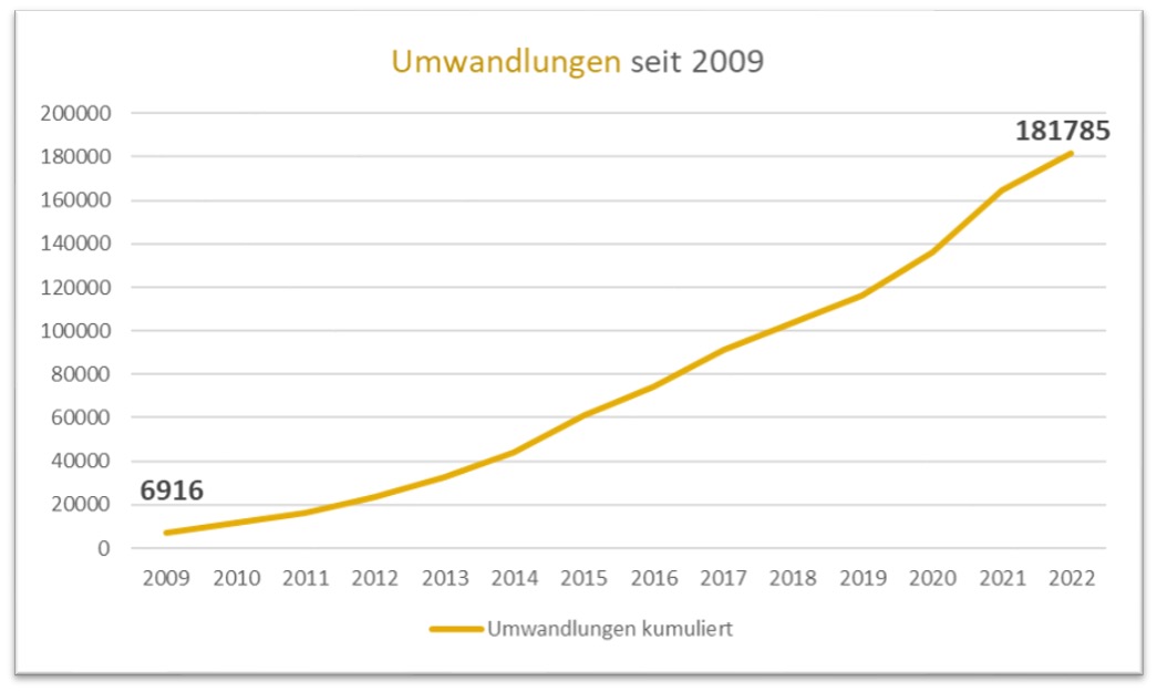 Noch vor dem Inkrafttreten der Berliner Verordnung kam es 2021 zu einem Rekordhoch von 28.783 Umwandlungen.