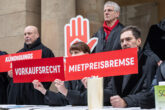 „Tut es – jetzt!“, fordert die Kampagne Mietenstopp vor dem Bundesjustizministerium
