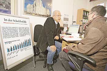 Einen Grund für die steigende Nachfrage sehen Berliner Schuldnerberater in der Hartz-IV-Gesetzgebung: Wer länger als ein Jahr arbeitslos ist, erhält das Arbeitslosengeld II (Alg II) – und eben nicht mehr wie früher Arbeitslosenhilfe, die bei vielen höher ausfiel. Mit 345 Euro müssen Alg-II-Bezieher monatlich auskommen. Die Miete wird zusätzlich gezahlt – aber nur in einem eng gesteckten Rahmen: Einpersonenhaushalte werden mit bis zu 360 Euro unterstützt, Neben- und Heizkosten inbegriffen. Wer zu zweit wohnt, kann monatlich bis zu 444 Euro in Anspruch nehmen, bei Dreipersonenhaushalten ist die Grenze bei 542 Euro. Für Björn Wilden* war das kein Problem: Er hat im vergangenen Jahr drei Monate lang Unterstützung bezogen. Dem Freiberufler sind kurzfristig Aufträge weggebrochen, deshalb ging er zum Jobcenter. Sein Vorteil ist die günstige Wohnung. Unweit der Auguststraße in Mitte zahlt er mit 320 Euro Warmmiete für 59 Quadratmeter deutlich weniger als sonst üblich. Doch er gehört auch zu den wenigen, die bald wieder die Kurve gekriegt haben. Die Auftragslage wurde besser – der Bezug staatlicher Unterstützung ist Vergangenheit.