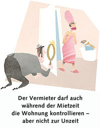 Der Vermieter darf die Ausführung der Schönheitsreparaturen beziehungsweise den Zustand der Räume allerdings auch schon während der Mietzeit kontrollieren. Die Gerichte halten dafür aber einen Besuch im Abstand von circa zwei Jahren für ausreichend – häufigere Kontrollgänge muss der Mieter nicht zulassen. Wie auch bei allen anderen Besuchen muss der Vermieter sich oder einen Beauftragten rechtzeitig vorher anmelden. Einen für sich unpassenden Termin muss der Mieter dabei nicht akzeptieren, er kann einfach selbst einen Gegenvorschlag unterbreiten.
