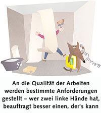 In Jobauktionsportalen wie www.jobdoo.de kann man die gewünschten Arbeiten ausschreiben. Handwerker können sich dann um den Auftrag bewerben – wie bei einer Auktion. Achtung: Der billigste Handwerker ist nicht immer der beste! Und für nicht fachgerecht ausgeführte Arbeiten ist der Mieter schadenersatzpflichtig.