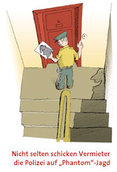 Viele Mietbetrüger kennen zudem einen Trick: Steht der Gerichtsvollzieher vor der Tür, wird plötzlich ein Untermieter präsentiert, etwa ein Bruder oder die Freundin. Nach der Rechtsprechung gilt der Räumungstitel aber nur für denjenigen, auf den er ausgestellt wurde. Der Gerichtsvollzieher muss also unverrichteter Dinge abziehen und das Verfahren beginnt von vorne.
