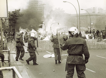 Mit dem Erfolg der Altbau-IBA (siehe Kasten: „IBA: Sanierung ohne Verdrängung“) wuchsen die Ängste vor einer „Yuppiesierung“. Es wurde schick, in Kreuzberg zu wohnen. Gleichzeitig entfiel 1987 die West-Berliner Preisbindung für Altbaumietwohnungen. Wohin sich die Mieten entwickeln sollten, zeigten etwa die Preise, die für ausgebaute Dachgeschosse verlangt wurden: Nach Recherchen des Berliner Mietervereins lagen sie 1988 im Schnitt bei 15,70 DM pro Quadratmeter – damals exorbitant hohe Preise. Der autonome Widerstand gegen die „Umstrukturierung“ und „Veredelung“ richtete sich zum Beispiel gegen ein „Schickimicki“-Restaurant in der Oranienstraße, das mit einem Kübel voller Fäkalien angegriffen wurde, aber auch gegen die Verfechter der behutsamen Stadterneuerung. So wurde das Büro des alternativen Sanierungsträgers „Stattbau“ verwüstet, ein taz-Redakteur attackiert und Kreuzbergs damaliger alternativer Baustadtrat Werner Orlowsky bedroht.