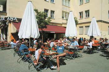 So wie am Kollwitzplatz liefen die Prozesse auch an anderen Stellen der Ost-Berliner Innenstadt ab: In der Spandauer Vorstadt beispielsweise, einem Gebiet nahe dem Alexanderplatz, zwischen Karl-Liebknecht-Straße, Torstraße und Friedrichstraße. Vor allem das einstige Scheunenviertel um die Große Hamburger Straße, Linien- und Auguststraße lockte mit leeren verfallenden Häusern, mit interessanten Gewerbehöfen und überraschenden Baulücken. Eine Straße wurde nahezu sofort nach der Wende auch für Touristen aus aller Welt der Anziehungspunkt Ost-Berlins schlechthin: die Oranienburger mit ihren Kellerkneipen, den Prostituierten und der wilden autonomen Ruine des „Tacheles“.