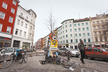 Sigmar Gude: „Gleichzeitig bringt das soziokulturelle Entwicklungen mit sich, stößt Lebens- und Freizeitprozesse an, verändert Infrastruktur und Konsummöglichkeiten.“ Noch funktionieren um die Bergmannstraße Nord die alten gewachsenen Nachbarschaften, noch hat sich die soziale und kulturelle Infrastruktur nicht wesentlich geändert. Das mag daran liegen, dass gerade das Gebiet um den Marheinekeplatz lange schon ein gewachsener, lebendiger Kiez war, mit gemütlichen Kneipen und Cafés, mit kleinen Läden und Boutiquen. Kein Verfall, keine Konsumwüste wie etwa im Ostteil der Stadt nach der Maueröffnung, wo neue Projekte und Aktivitäten wie von einem Schwamm aufgesaugt wurden. Wo Veränderung nicht nur möglich, sondern auch bitter nötig war.