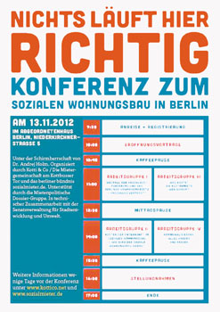 Der Soziale Wohnungsbau ist in Berlin in vielerlei Hinsicht außergewöhnlich. Vor allem war er extrem teuer. Die Folgen der aufgeblähten Baukosten belasten den Berliner Haushalt heute noch schwer – auch nach dem abrupten Ausstieg. Die Sozialmieter in den Häusern, für die keine Anschlussförderung mehr gewährt wurde, sitzen auf einer tickenden Zeitbombe, die ihnen tagtäglich mit irrsinnig hohen Mietforderungen um die Ohren fliegen kann. Und auch in den übrigen Sozialwohnungsbeständen sind die Mieten oft schon so hoch, dass sie für Geringverdiener, Arbeitslose oder Rentner nicht mehr zu bezahlen sind. „Nichts läuft hier richtig“, lautete denn auch der treffende Titel einer kürzlich veranstalteten Mieterkonferenz über die Probleme des Sozialen Wohnungsbaus in Berlin.