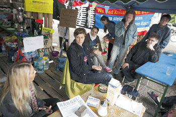Das Wort „sozial“ trägt der Wohnungsbau am Kottbusser Tor in Kreuzberg nur noch in seinem Namen: Protest-Camp von Kotti & Co