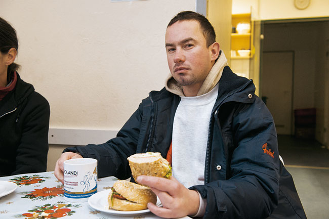 Der Grund, sich von staatlichen Stellen fernzuhalten, sind 2000 Euro Schulden, die sich wegen Schwarzfahrens bei ihm angesammelt haben. Viermal sei er deshalb schon im Gefängnis gewesen, zuletzt hätte er sechs Monate abgesessen. Auch um eine Wohnung zu bekommen, müsste er ja erst einmal auf ein Amt. Er winkt ab: „Ich komme auch so durch. Und hier in der Bahnhofsmission kann ich alle zwei Tage duschen.“