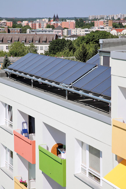 Das Märkische Viertel im Norden Berlins, gebaut in den Jahren 1964 bis 1967, hatte nach fast 40 Jahren eine Generalüberholung dringend nötig. Die kommunale Wohnungsbaugesellschaft Gesobau, mit mehr als 13.500 Wohnungen größte Vermieterin im Quartier, begann mit der energetischen Sanierung 2008 und modernisierte innerhalb der folgenden acht Jahre ihre Bestände. Dabei ging sie schrittweise vor und investierte sowohl in die Wohnhäuser als auch in die Umgebung. Da die meisten Mieter während der Umbauarbeiten in ihren Wohnungen blieben – weder eine bequeme Situation für die Bewohner noch für die Sanierer – arbeiteten die unterschiedlichen Gewerke und Firmen von Wohnhausgruppe zu Wohnhausgruppe so abgestimmt und zügig wie möglich. Und sie schafften es, die einzelnen Wohnungen innerhalb von 14 Tagen termin- und budgetgerecht fertig zu übergeben.