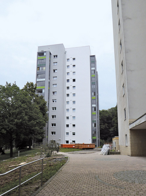 Bei der energetischen Modernisierung von drei Wohnhochhäusern im Südosten Gießens mussten Gebäude aus der Mitte der 1960er Jahre auf ein zeitgemäßes Level gehoben und in einen umweltverträglichen Zustand gebracht werden. Für die Mieter, die in ihrem gewohnten Zuhause bleiben wollten, sollte das möglich, also bezahlbar sein. So war einerseits eine durchdachte Planung der Umbauten gefragt, andererseits die Ausschöpfung aller Fördermöglichkeiten – und schließlich vor allem auch die Akzeptanz der rund 300 Bewohner, die in den Zwölfgeschossern lebten. Das kommunale Wohnungsunternehmen Wohnbau Gießen GmbH, mit über 7000 Wohnungen größte Vermieterin der hessischen Stadt, hat mit der Beteiligung seiner Bewohner durchaus Erfahrung. Seit über 30 Jahren gibt es eine institutionalisierte Mietermitbestimmung. So vereinbarte das Unternehmen mit dem Mieterrat eine Kappung der Miete in den Hochhäusern nach Abschluss der Sanierungsarbeiten. Die Kaltmiete durfte für Bestandsmieter nicht höher als 6 Euro pro Quadratmeter ausfallen, bei Neuvermietung würden zwischen 7,50 und 8 Euro pro Quadratmeter gefordert werden.
