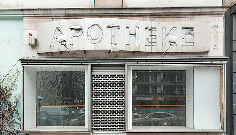Es geht vorbei an Gebäuden und Eingängen, die der Schöneberger Fotograf und Autor André Kirchner fotografiert hat. Es zeigen sich stille Momentaufnahmen, die durchgehend im Morgenlicht entstanden sind. Ganz so wie der berühmte französische Fotograf Eugène Atget sein Paris um 1900 hat Kirchner die Orte menschenleer abgelichtet. Umrahmt werden die Fotografien von historischen Abbildungen und Objekten, die die bewegte Chronik der Geschäftsmeile nachzeichnen. „Vielleicht ist jetzt der Zeitpunkt gekommen, genauer hinzusehen, jetzt, da die Schaufenster durch die schwarzen Löcher des unsichtbaren Handels im Internet langsam ausgesogen und entleert werden“, schreibt André Kirchner im Katalog zur Ausstellung. „Und man wird in den Fotografien bemerken, dass schon am Vorabend der Pandemie eine verkehrsreiche Geschäftsstraße wie die Potsdamer Straße oder die Hauptstraße sich stark verändert hatte, ja streckenweise bereits wie ausgehöhlt wirkte.“