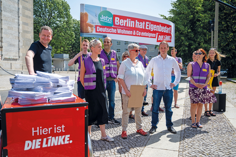 Auch die Linke ist unzufrieden. „Allein auf unverbindliche Bündnisse und Runde Tische mit Immobilienkonzernen zu setzen, führt nicht weiter“, erklären die Fraktionsvorsitzenden Anne Helm und Carsten Schatz sowie der wohnungspolitische Sprecher Niklas Schenker. „Wohnen ist zu wichtig, um es dem Markt zu überlassen.“ Die Linksfraktion hat deshalb im November Eckpunkte für ein „Sicher-Wohnen-Gesetz“ vorgelegt. Damit will sie die Wohnraumversorgung als eine Aufgabe der öffentlichen Daseinsvorsorge gesetzlich festschreiben. Um Menschen mit WBS besser gerecht zu werden, sollen auch außerhalb des Sozialen Wohnungsbaus Belegungsbindungen geschaffen werden. Für mehr Transparenz auf dem Berliner Immobilienmarkt fordert die Linke ein öffentlich einsehbares Mieten- und Wohnungskataster, das „Auskunft über Miethöhen, Eigentümer:innen und Ausstattungsmerkmale der Wohnungen gibt. Damit Wohnhäuser nicht verfallen, sollen Eigentümer:innen nachweisen, dass sie für die Instandsetzung eine Rücklage gebildet haben.“ Abrisse will die Linke ausschließen. Zur Durchsetzung der wohnungspolitischen Maßnahmen schlägt sie ein neues Landesamt für Wohnungswesen vor.
