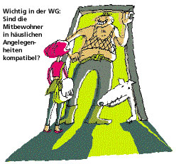 Studenten bevorzugen oftmals die Wohngemeinschaft. Sie bietet viele Vorteile: Die Kosten für Telefon, Wasser, Strom, Heizung und Internetanschluss werden mit den Mitbewohnern geteilt. Ein WG-Zimmer ist je nach Größe und Lage in Berlin schon ab 120 Euro Miete im Monat zu haben. Nicht zu vernachlässigen ist der soziale Aspekt dieser Wohnform: Gerade für diejenigen, die neu in der Stadt sind und noch nicht so viele Leute kennen, bietet sich durch eine WG die Möglichkeit, schnell Anschluss zu finden. Es ist ratsam, sich seine neuen potenziellen Mitbewohner gut anzusehen und schon vorab Dinge zu klären, die das Zusammenleben vereinfachen. Dazu gehört zum Beispiel ein Putzplan.