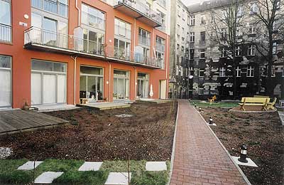 Parklösung mit Pfiff: in den Ballerhäusern am Fraenkelufer dienen die Höfe der Erholung