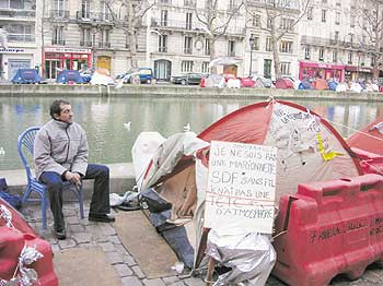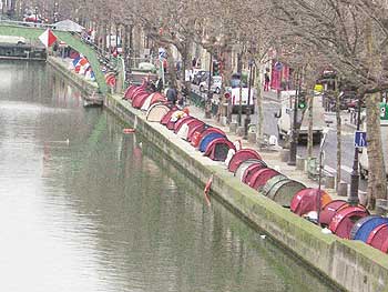 Jedes der rund 250 Zelte trägt eine Hausnummer, gerade am einen, ungerade am anderen Ufer des Kanals, gleichsam als offizielle Wohnadresse. Nicht jedes Zelt ist belegt. Manches spricht für sich: Vorname, Beruf, Dauer der Obdachlosigkeit sind auf einem Zettel vermerkt. Auch so mancher wohlmeinende Pariser hat aus Solidarität schon mal eine Nacht mit den Obdachlosen am Kanal verbracht. Staatschef Jacques Chirac selbst forderte in seiner Neujahrsansprache ein einklagbares Recht auf Wohnraum (siehe Kasten).