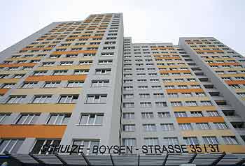 In Berlin-Lichtenberg steht das derzeit größte Niedrigenergiehaus Europas. Das Wohnungsunternehmen Howoge hat die 18- und 21-Geschosser in der Schulze-Boysen-Straße 35/37 vor zwei Jahren innerhalb von neun Monaten vom Dach bis zum Keller saniert und umgestaltet. Vor allem die neu eingezogenen Mieter sind zufrieden.