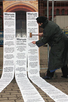 Trotz eines eher kargen Werbebudgets von 12000 Euro aus Spendengeldern ist es den Aktivisten des „Wassertischs“ gelungen, 666000 Berliner zum Gang an die Urnen zu mobilisieren. Das entsprach einem Anteil von 27, 5 Prozent der Wahlberechtigten, womit die erforderliche Mindestanzahl um 2,5 Prozent überschritten wurde. Am erstaunlichsten war jedoch die klare Zustimmung von 98,2 Prozent für das Anliegen der Wasser-Aktivisten. Diese hatten mit dem Volksentscheid nicht nur die vollständige Veröffentlichung aller Vertragsdetails zum Verkauf der Berliner Wasserbetriebe erreichen wollen – ein Anliegen, dem der Senat bereits nach dem erfolgreichen Volksbegehren im November 2010 teilweise nachgekommen ist –, sie wollten auch durchsetzen, dass Privatisierungsverträge der öffentlichen Hand prinzipiell als ungültig erklärt werden, wenn sie nicht innerhalb eines gewissen Zeitrahmens der Öffentlichkeit zugänglich gemacht werden.