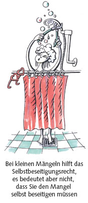 Wenn es nur um einen verstopften Abfluss oder eine defekte WC-Spülung geht, lässt sich das Problem relativ einfach lösen. Reagiert der Vermieter auf die schriftlichen (!) Mängelanzeige mit Fristsetzung nicht, kann man selber einen Handwerker beauftragen und sich die Kosten vom Vermieter ersetzen lassen. Notfalls zieht man den Betrag von der nächsten Miete ab. Dieses Selbstbeseitigungsrecht kann auch nicht vertraglich ausgeschlossen werden. Man muss allerdings darauf achten, nur das Nötigste reparieren zu lassen. Wer gleich beim Tischler neue Fenster bestellt, statt die alten abdichten zu lassen, bleibt höchstwahrscheinlich auf einem Teil der Auslagen sitzen. Denn der Vermieter muss nur die „erforderlichen Aufwendungen“ ersetzen, das heißt die Kosten, die notwendig sind, um den Mangel zu beseitigen.