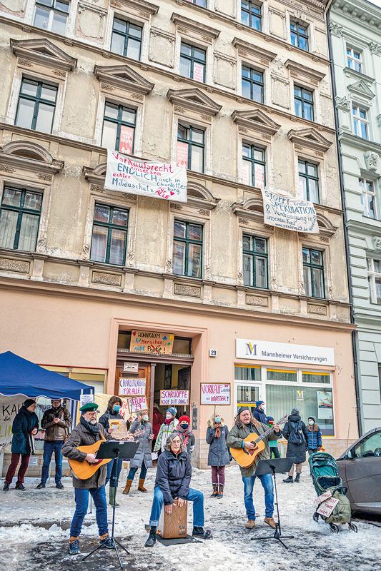 Am Haus hängen Protestplakate, und Mitte Februar organisierten die Mieter mit Unterstützung des Berliner Mietervereins eine Kundgebung. In Charlottenburg-Wilmersdorf ist das ein eher ungewohntes Bild. Viele Jahre hat das Bezirksamt das Instrument der sozialen Erhaltungsgebiete stiefmütterlich behandelt, anders als in Neukölln oder Friedrichshain-Kreuzberg. Noch nie wurde in Charlottenburg-Wilmersdorf das Vorkaufsrecht ausgeübt, gerade einmal zwei Abwendungsvereinbarungen wurden ausgehandelt. Das müsse sich ändern, findet die Hausgemeinschaft Seelingstraße 29. „In unserem Haus wohnen Familien, Studierende und Transferleistungsbezieher, wir könnten uns hier keine andere Wohnung leisten“, erklärt Mieterin Viola Dollinger-Rauch.