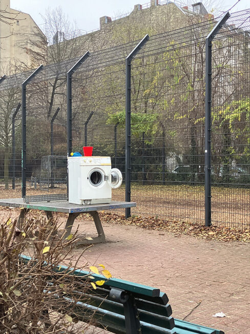Leserfotografin Claudia Hoffmann konnte sich vor Kurzem auf dieses Arrangement in Charlottenburg keinen Reim machen. Handelte es sich hier um eine neue Variante des Tischtennisspiels?