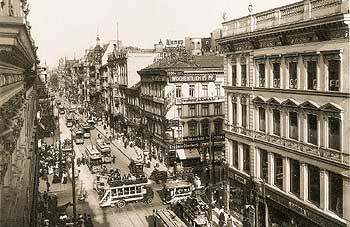 Doch warum gefiel gerade den Berlinern jener Zeit das Wortspiel mit dem „Bahnhof“? Tatsächlich boomte in den 20er Jahren das Berliner Verkehrswesen: Automobile, Droschken, Motorbusse, elektrische Straßenbahnen, modernste Hoch- und Untergrundbahnen, dazu die Eisenbahn und ein wachsender Umfang an Haltestellen und Bahnhöfen veränderte das Berliner Großstadtleben erheblich. Ein Verkehrslärm von bis dahin unbekannten Ausmaßen entwickelte sich, aber nicht nur akustisch, auch optisch veränderte sich die Wahrnehmung. Es entstand der sogenannte „Verkehrsstrom“, das Dahinfließen dichter Kolonnen von technischen Fortbewegungsmitteln, die zudem ein neues Maß von Geschwindigkeit erreichten. Dieses Zusammenspiel aus Lärm, Tempo und Strömen, das hör- und sichtbare Dahinrauschen eines ständigen Bewegungsflusses, bei dem Straßen und Gleise zu „Adern“ werden, nannte sich entsprechend der „Puls“ der Großstadtmetropole. Schon damals schlug er manchmal so laut, dass Berliner Fußgänger ihre eigenen Worte nicht mehr vernehmen konnten. „Ach, du grüne Neune! Ick versteh‘ bloß noch Bahnhof!“