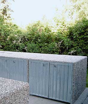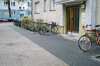 „Wir suchen immer nach Möglichkeiten, Abstellanlagen zu errichten“, sagt Thomas Gilges-Klemt, der beim Wohnungsunternehmen Gewobag als Landschaftsplaner tätig ist. Der Trend gehe zu Abstellanlagen auf Grundstücksfreiflächen. Doch was sich dort findet, ist häufig nicht auf der Höhe der Zeit. In der Paul-Hertz-Siedlung in Charlottenburg-Wilmersdorf bestehen noch viele Abstellanlagen aus sogenannten „Felgenkillern“: Das Fahrrad wird mit dem Vorderrad eingestellt und damit an der empfindlichsten Stelle fixiert – die Folge ist, dass die Felge schnell verbiegt und das Vorderrad neu eingespeicht werden muss. Doch gibt es in der Sied-lung auch Fahrradkeller und fest im Boden verankerte Bügel vor den Haustüren – das ermöglicht das Parken des Zweirades, ohne Schäden befürchten zu müssen.
