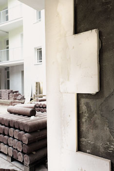Dass die Wärmedämmung in die Diskussion geraten ist, hat aber noch einen ganz anderen Grund. Nicht selten kommt es nach dem Aufbringen eines Wärmeverbundsystems zu Feuchtigkeitsproblemen bis hin zu Schimmelbildungen. Diese Erfahrung machte auch eine Familie in der Neuköllner Hufeisensiedlung. Seitdem die Kellerdecke und der Dachboden vor circa einem Jahr gedämmt worden sind, ist ihr Schlafzimmerfenster jeden Morgen von innen beschlagen. Im Keller ist es feucht, hier sind einige Dämmplatten bereits abgefallen, ebenso auf dem Dachboden, wo es nun regelmäßig hineinregnet. Möglicherweise wurden die Dämmplatten nicht ordnungsgemäß angedübelt. Oder beim Einsetzen der Fenster wurde nicht sorgfältig gearbeitet.