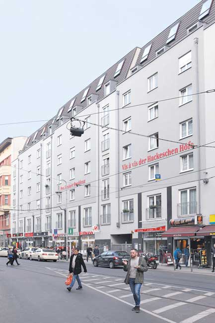 Das Gebäude Rosenthaler Straße 43-45, direkt gegenüber den Hackeschen Höfen, wurde kürzlich an die Hamburger Investmentfirma „DC Values“ verkauft. Die plant anstelle der Seniorenresidenz einen Neubau mit Büros, Boutiquen, Gastronomie und 40 Prozent Wohnungen. Ein entsprechender Bauvorbescheidsantrag wurde beim Bezirksamt Mitte eingereicht. Das bekannte Architekturbüro „nps tchoban voss“ wurde mit den Entwürfen beauftragt.