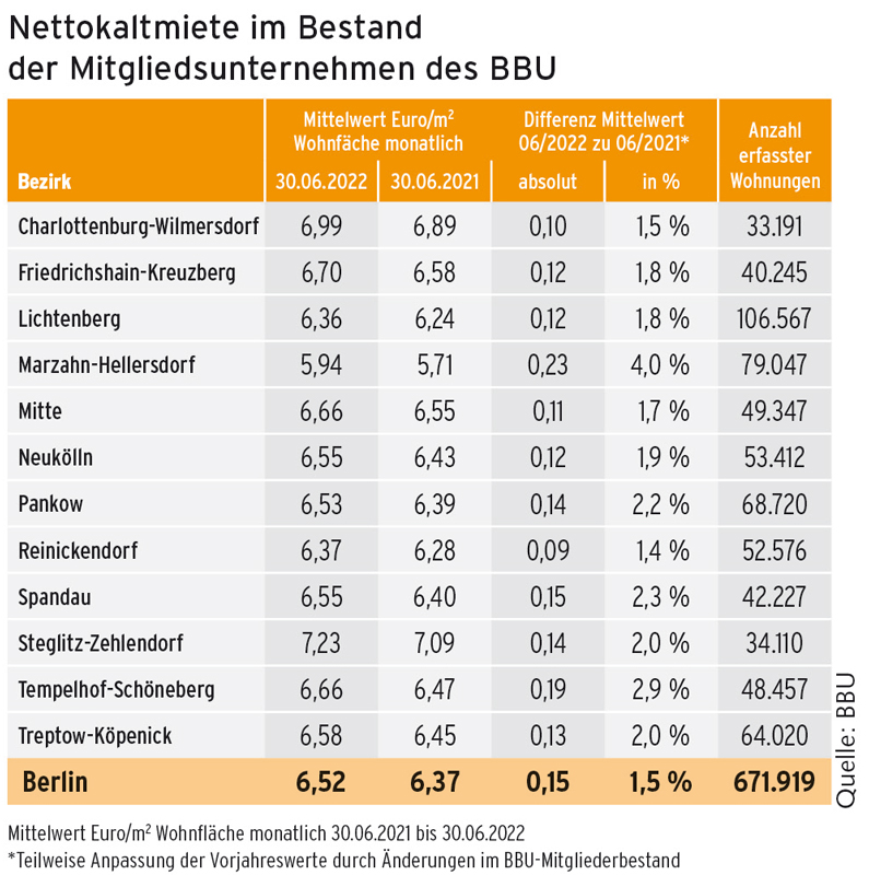 Diese Zahlen spiegeln nicht den gesamten Berliner Mietmarkt wider. Die sechs landeseigenen Wohnungsbaugesellschaften haben im Verband BBU ein großes Gewicht. Und weil ihre Mieten politisch begrenzt sind, haben sie in der BBU-Mietenstatistik einen stark dämpfenden Einfluss.