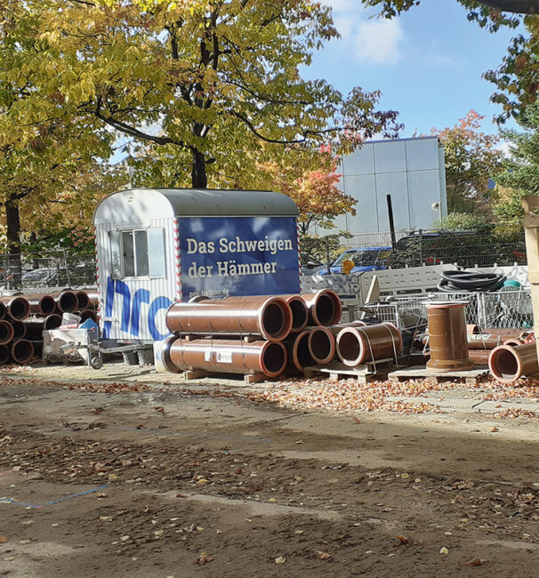 Wochenlang die Straße gesperrt und nichts tut sich, hat Gabriele Winde, die Einsenderin unseres Fotos, festgestellt und fand ihre Beobachtung von der Aufschrift auf dem Bauwagen treffend kommentiert.