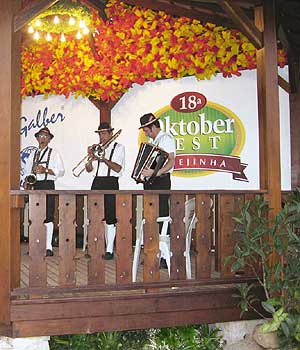 „Herrliche Berge, sonnige Höhen, Bergvagabunden sind wir, ja wir“ schallt es aus den Boxen von der riesigen Bühne auf einem der vier fußballfeldgroßen Festplätze, die in Igrejinha extra für das jährliche Mega-Event Oktoberfest gebaut worden sind. In Blumenau, im Süden Brasiliens, hat man vor 23 Jahren damit angefangen, das Oktoberfest durch intensive touristische Vermarktung wieder salonfähig zu machen. Inzwischen hat fast jede der Städte, die auf die deutsche Einwanderung seit 1824 zurückgehen, ihre eigene „Wies’n“.