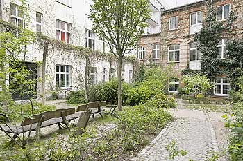 Das Projekt „Berliner Hofgärten“ unterstützt Bewohner, die ihre Hinterhöfe, Vorgärten und Fassaden begrünen wollen: Die Grüne Liga hat einen Musterhof, der besichtigt werden kann. Dort finden auch Führungen und Beratungen statt.