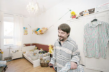 Nico Hermann hat mit seinen Stofftieren im „Haus Schöneweide“eine Heimstatt gefunden