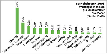 Für eine 80 Quadratmeter große Wohnung mussten bei Anfallen aller Kosten 2793,60 Euro im Jahr 2008 nur an Betriebskosten aufgebracht werden. Das sind 4,7 Prozent mehr als noch im Abrechnungsjahr 2007.