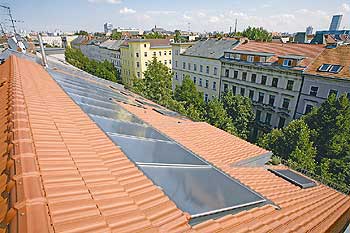 Solaranlage auf dem Dach eines privaten Altbaus in der Kreuzberger Oppelner Straße